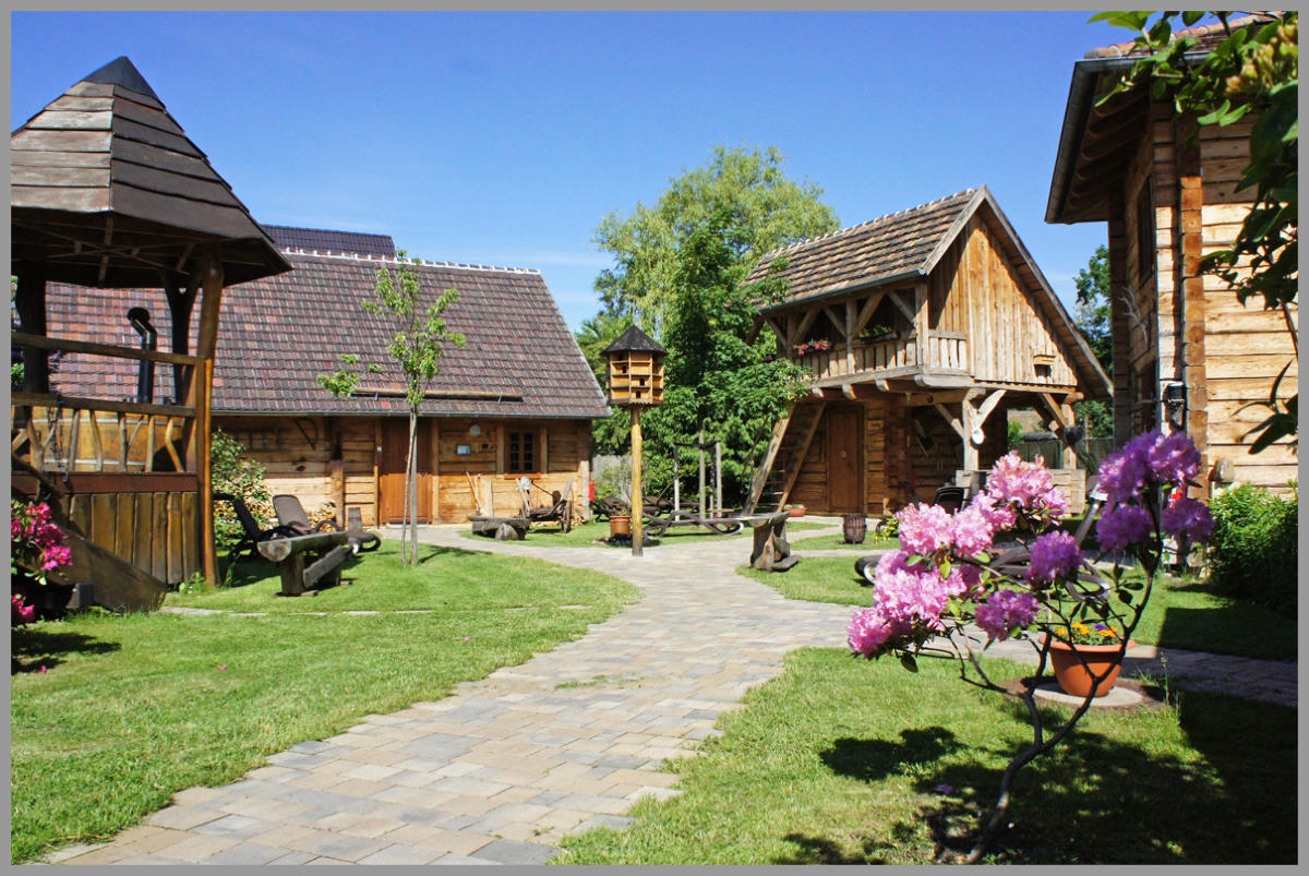 Schrotholz-Saunagarten der Erlebniswelt